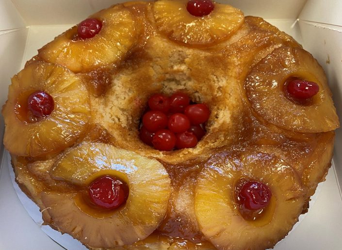 Cakes are seasonal (with the pineapple upside down cake being the exception). To order a cake “out of season” there is an additional $10 fee.