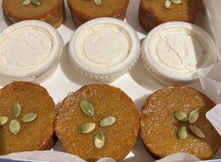 • Pumpkin Tarts 6 for $24 or 12 for $48(Pumpkin Tarts are seasonal September – November)